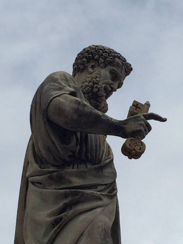 - I loved the famed bronze statue of St. Peter, the one that pilgrims rub or kiss his right foot. And yes, I did it. I also love that in it, Peter is holding the keys to heaven in his hand.