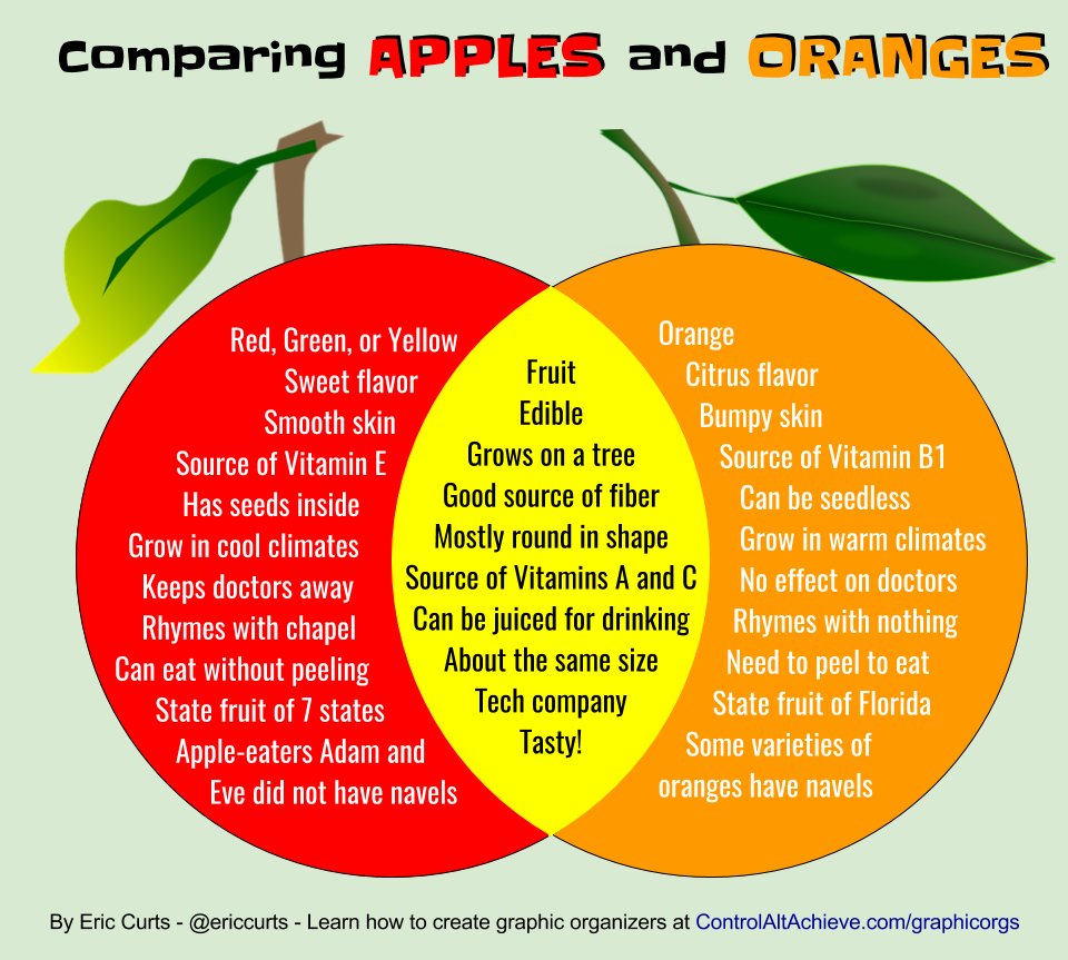 Let’s start with “comparing apples and oranges.” What a funny thing, right? Credit is often given to the Germans and Dutch for this comparison of things that are completely different and that cannot be practically compared.